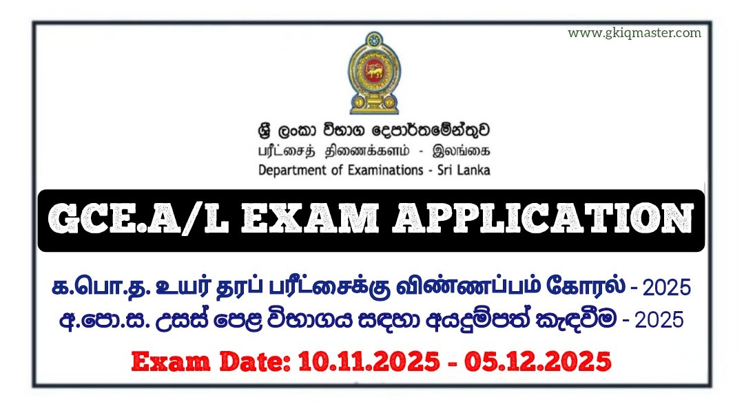 Calling Applications for GCE.A/L Examination 2025 – Department of Examinations