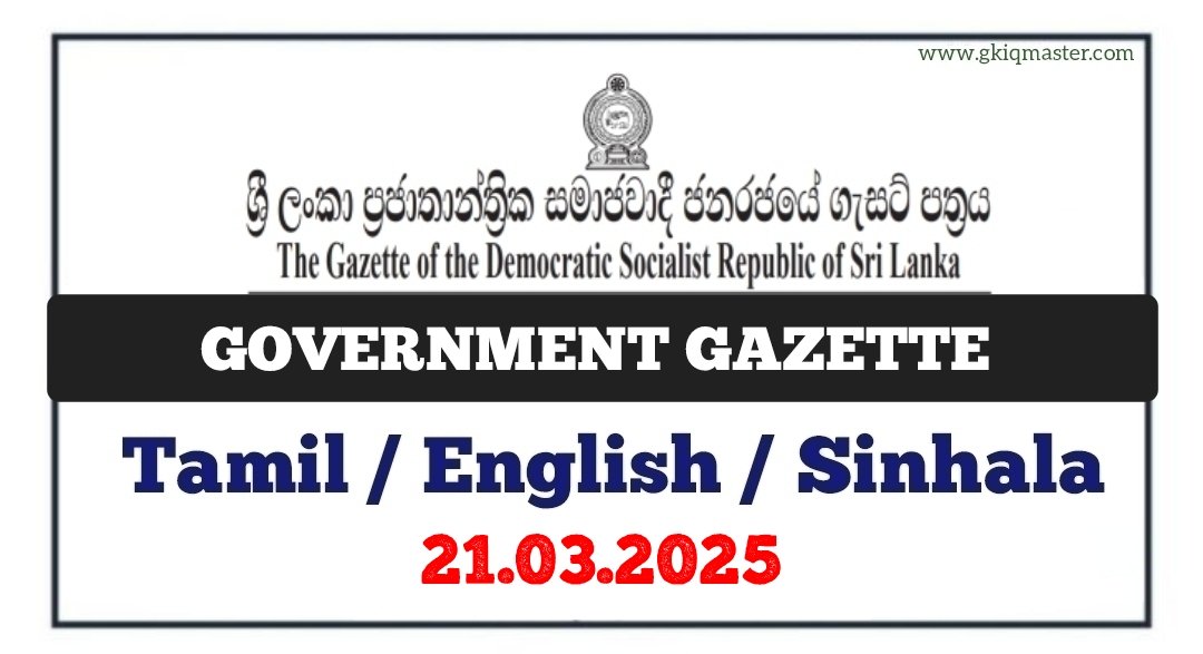 Sri Lanka Government Gazette 21.03.2025. You can View & Download the Gazette in Tamil, English & Sinhala Edition.